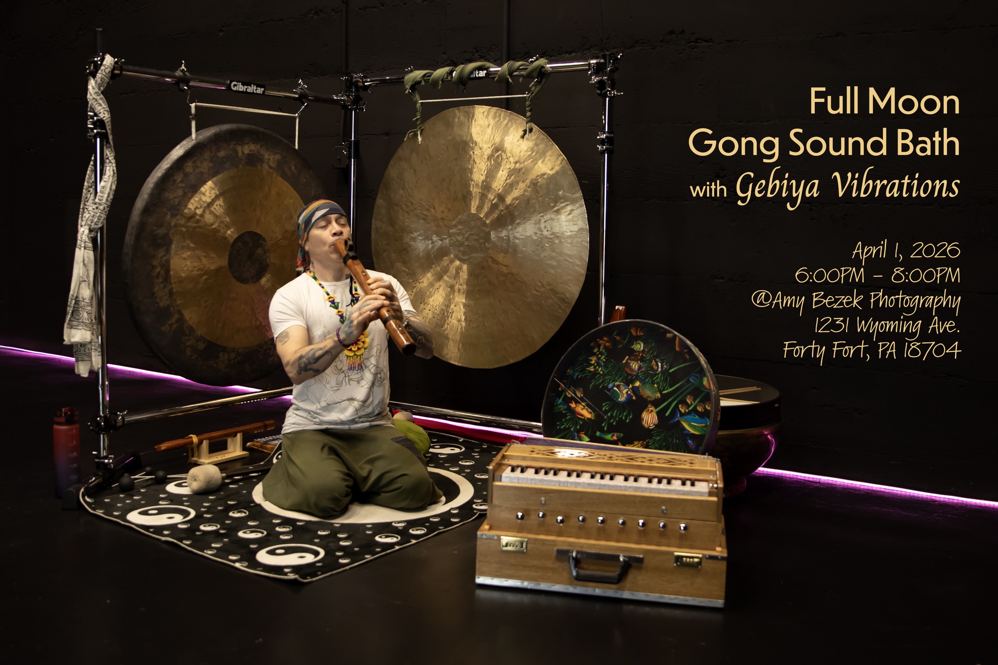 Dec 4 Gebiya Sacred FULL MOON Gong SoundBath Meditation Featured 6:00 pm - 8:00 pm Amy Bezek Photography Studio 1231 Wyoming Ave, Forty Fort Event Details Get Directions